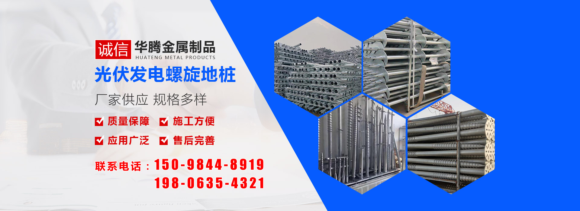 華騰金屬制品 (山東) 有限公司是螺旋地樁定制銷售公司,主營(yíng)光伏螺旋地樁、光伏地樁等產(chǎn)品所生產(chǎn)的光伏螺旋地樁品種規(guī)格齊全,并可根據(jù)客戶的需求、圖紙、樣品研發(fā)產(chǎn)品。多年來我們以優(yōu)良的服務(wù)及高精端產(chǎn)品贏得了國(guó)內(nèi)外廣大客商的贊譽(yù)及肯定,光伏螺旋地樁等產(chǎn)品廣泛應(yīng)用于光伏太陽能電站樁基、房屋建筑樁基、...…